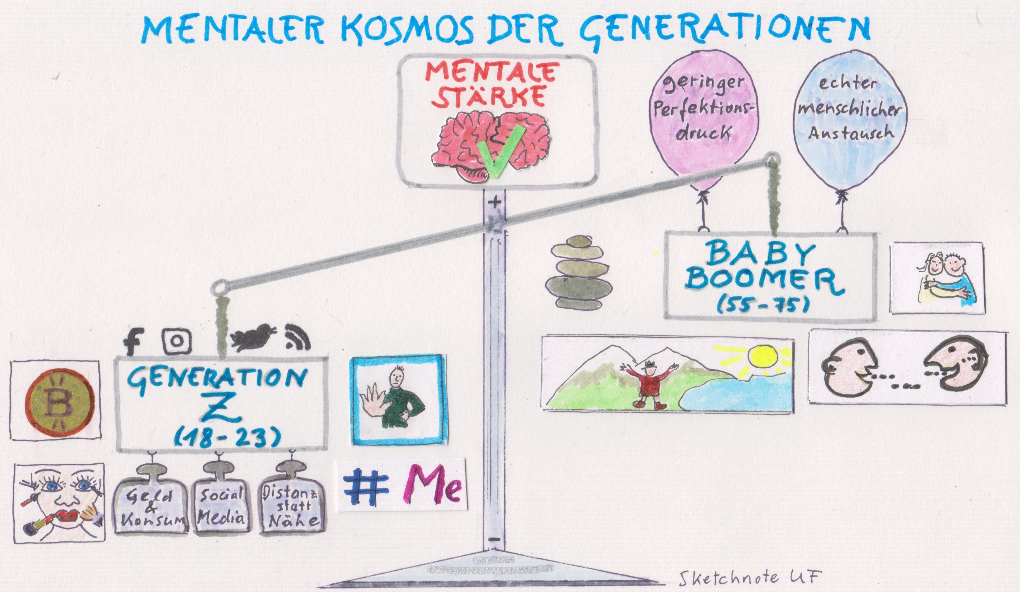 Das ist einer der wesentlichen Gründe dafür warum sich jeweils 60 % der Baby Boomers und der jüngeren Generation Z[2] einig darin sind, dass die jüngere Generation mental schwächer ist als die ältere: die Jümgeren leiden an ihrem Fokus auf digitale Medien zulasten echter menschlicher Beziehungen. Das belastet auch den Umgang mit mentalen Störungen: 57 % der Generation Z finden es schwer, mit Freunden, Verwandten oder Partner über mentale Probleme zu reden, aber nur 26 % der älteren Boomers verspüren diese Barriere.