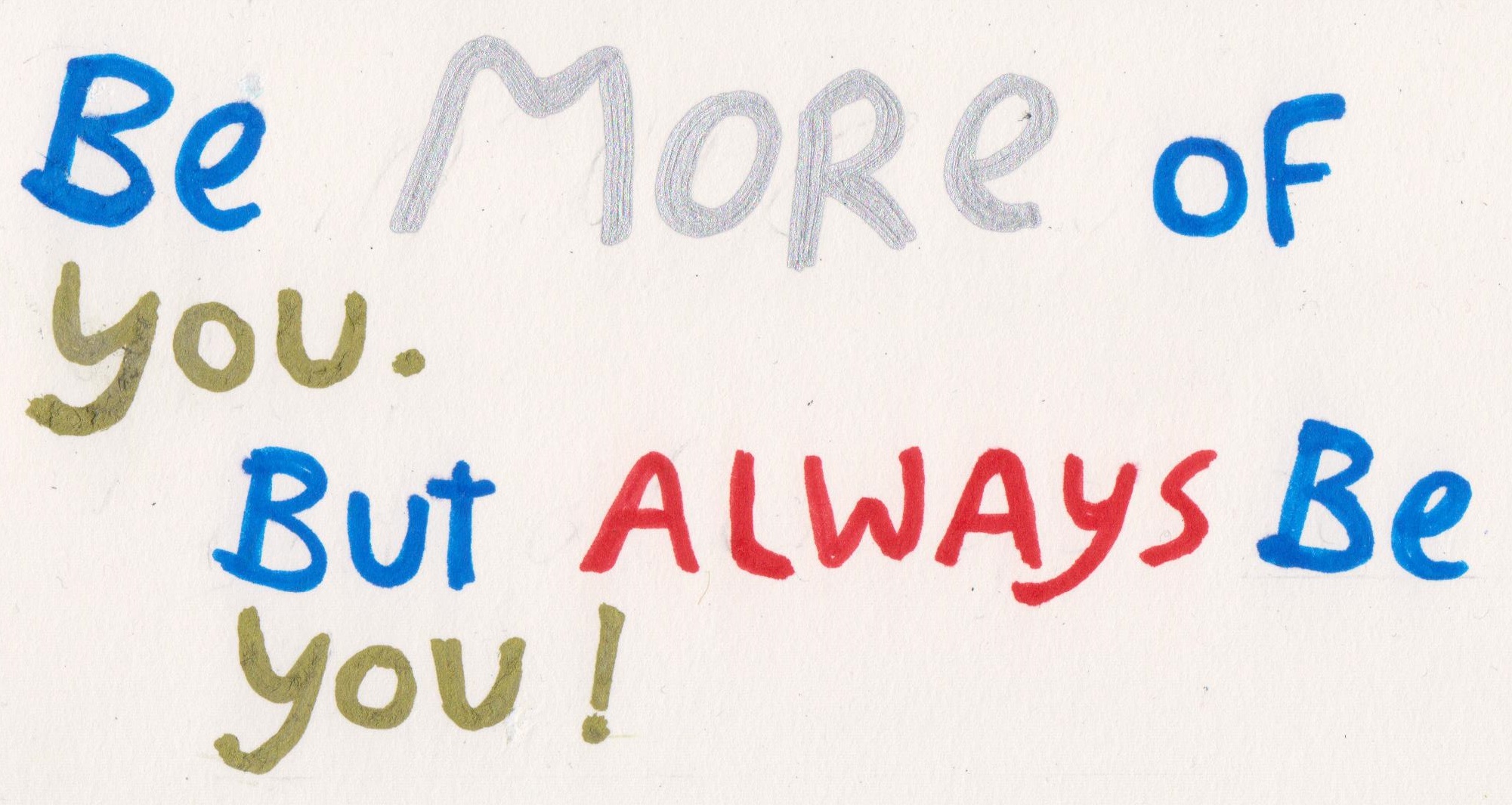 Jeder Mensch hat etwas ganz Eigenes, das ihn ausmacht. Das kann der persönliche Stil sein, der Umgang mit anderen, ein spezieller Humor, große Visionen, kleine Gesten, besondere Marotten, Talente oder Hobbies, kurzum: das, was einem als erstes einfällt, wenn man an eine bestimmte Person denkt. Dieser Kern einer Persönlichkeit trägt einen durchs Leben, auch wenn sich die Rollen im Laufe der Zeit ändern und multipler werden. Das Motto lautet: „Be more of you, but always be you.“